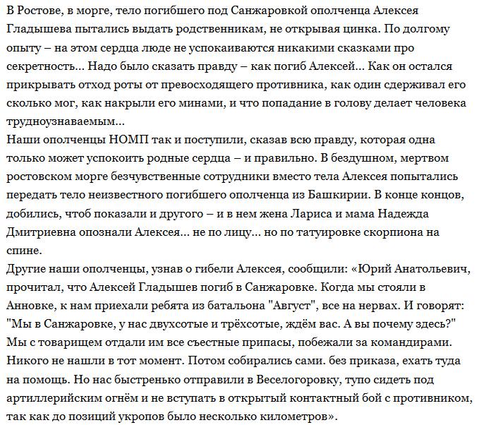 Рашист Алексей Гладышев (29/10/76,Кинешма,https://vk.com/berserk2910 ) убит 26/01/15 в Санжаровке.