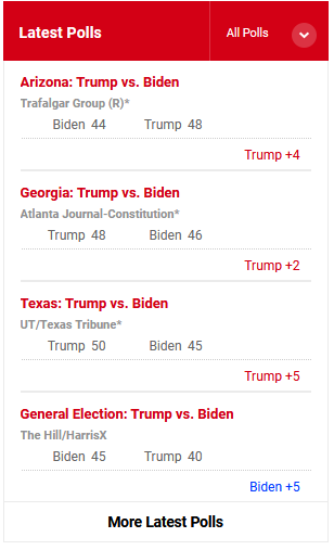 RCP Average 9/25 - 10/8 -- -- 48.2 45.5 Biden +2.7