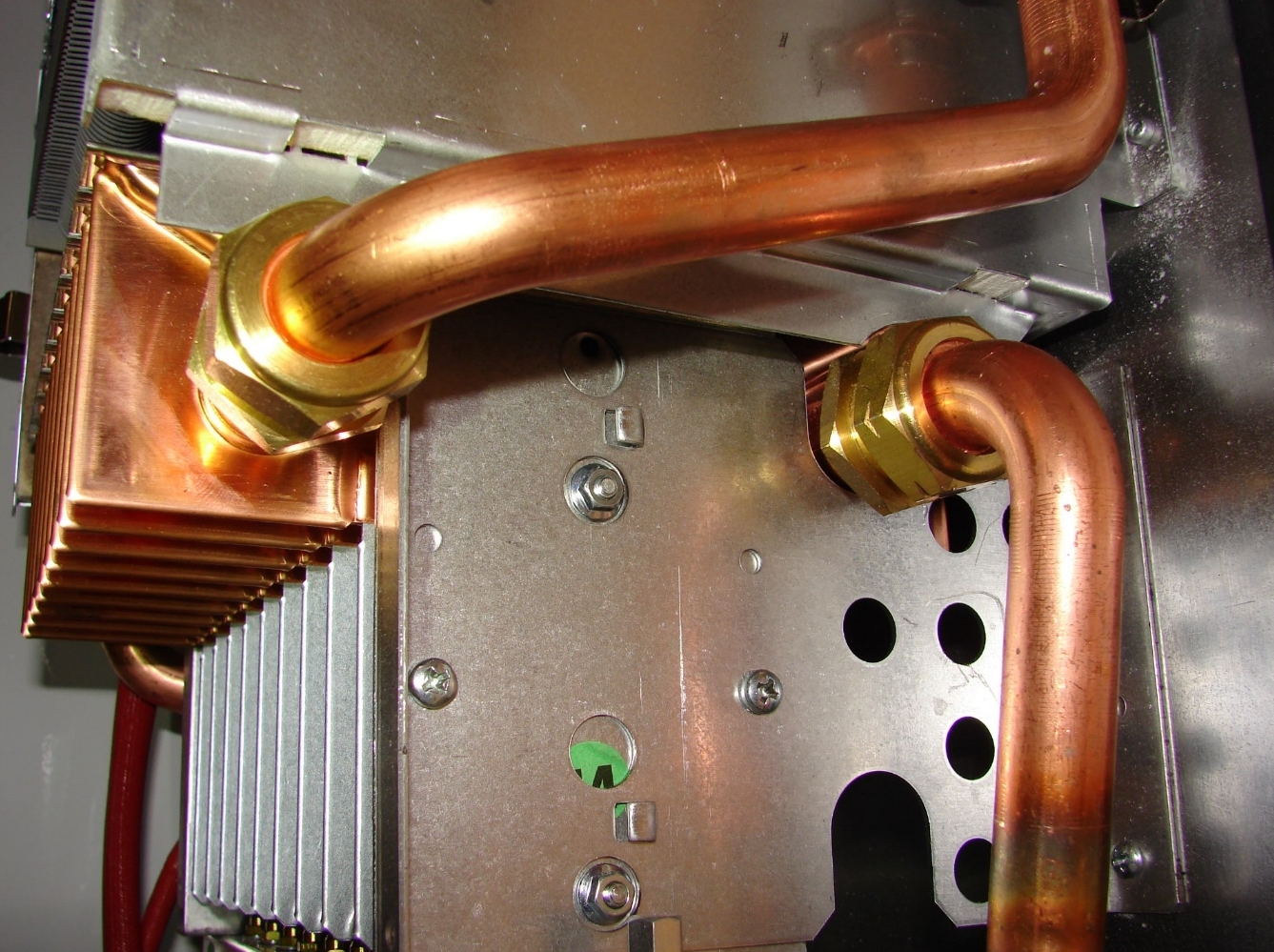 Вот тут видно: справа подаётся холодная обратка, слева выход подогретой обратки на основной теплообменник.