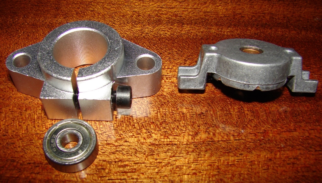 Ставится такая вот обойма со стандартным 626-м подшиником, который стоит 10грн. При техобслуживании раз в год подшипник меняется на новый.