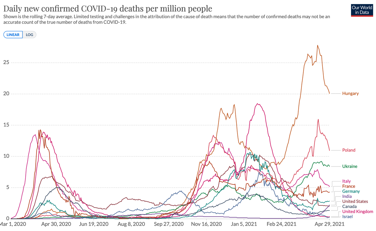 Цілий світ заклопотаний спалахом ковіду в Індії. В 10 разів зросла смертність - з 300 за день до 3000. (Тільки що сказали у Савіка)
