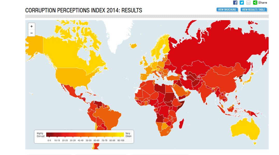 Неурядова міжнародна організація по боротьбі з корупцією та дослідженню рівня корупції по всьому світу Transparency International оприлюднила результати нового Індексу сприйняття корупції 2014.