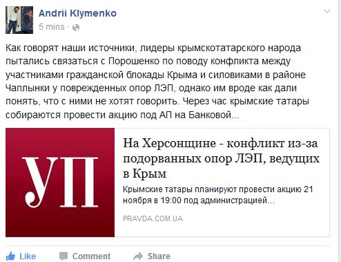 Розгорнути попередні цитати...А не дай Боже дізнаються, що електрика у дротах береться з підступних українських електростанцій....про це вони знають, але едлектрика з тих електростанцій іде не тільки на підтримку оккупантів у Криму а й використовується на неокупованій території. Тому, на відміну від підарів що поставляють електрику армійським частинам оккупанта, наносити шкоду территорії що контролює Україна не входить у плани блокувальників.А ви певні, що точно розібралися із субєктивною стороною, так би мовити, цик активістів?