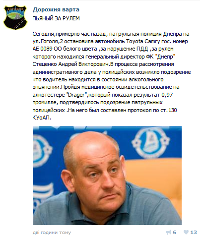 | Re: В Киеве задержан нетрезвый гендиректор ФК «Днепр» |